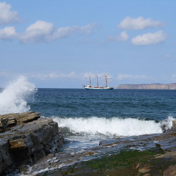 Just 10 miles off the coast of Northern Scotland is Kirkwall, capital of the Orkney Islands, an area rich in wildlife and archaeological sites. The Neolithic village of Skara Brae was discovered after a storm in 1850, and the site reveals that Orkneys were inhabited as early as 5,000 years ago.