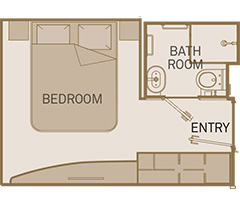 250 square foot suite with complimentary Butler Service, early morning tea & coffee service, lounge area, spacious bathroom with shower over bath, flat screen TV and infotainment system and spacious outdoor balcony featuring Scenic ‘Sun Lounge’.