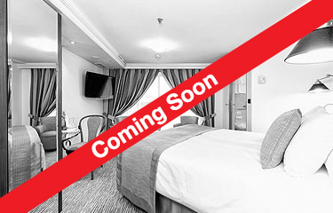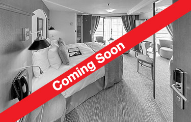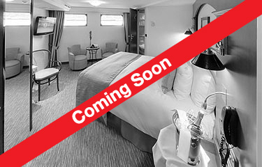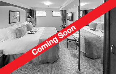 Set forward on the Ruby Deck, these two Category 5 cabins feature a double bed with optional twin-bed configuration with 400 thread count cotton linens/white duvets and pillows of mako cotton with hypoallergenic 90% down filling. The marble bathroom includes Molton Brown toiletries and a terry-cloth bathrobe plus slippers. The room also includes a floor-to-ceiling French Balcony with a sliding door, a refrigerator stocked with complimentary water and soft drinks replenished daily. Amenities also include a 32” LED TV, two chairs plus a desk, a built-in closet with drawers, as well as a telephone, safe, and individual climate control. Wi-Fi is also available onboard.