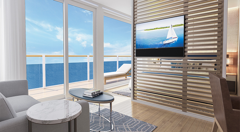 Stateroom size: 425 sq ft (includes private veranda)River-view suite with floor-to-ceiling sliding glass door opening to an extensive veranda12 PM Embarkation12 PM priority stateroom accessKing-size Viking Explorer Bed (optional twin-bed configuration) with luxury linens & pillowsFree Wi-Fi (connection speed may vary)42" flat-screen LCD TV with intuitive remote & complimentary Movies On DemandAdditional 42" flat-screen interactive LCD TVs in sitting area110/120 volt US-standard outlets & USB portsLarge private bathroom with spacious glass-enclosed shower, double-sink vanity, heated floor, anti-fog mirror & hair dryerPremium Freyja® toiletriesPlush robes & slippersTelephone, safe, refrigeratorIndividual climate controlPurified water refilled dailyWelcome bottle of champagneMini-bar with alcoholic beverages, soft drinks, water & snacks (replenished once daily)BinocularsTraditional Norwegian Marius-weave blanketPersonal coffee machine with premium coffee & tea selectionsStateroom steward & twice-daily housekeeping24-hour room serviceComplimentary laundry & shoe shine servicesUnder-bed suitcase storage spaceRoomy wardrobe with wooden hangers